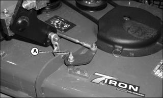 • Lubricate four mower deck baffle pivots (A) with John Deere Multi-Purpose SD Polyurea Grease or an equivalent.