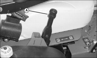 2. Loosen set screw (A) on park brake handle knob and and turn knob clockwise several times. Tighten set screw down into the lower slot.
