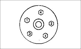 2. Install and tighten wheel nuts in numbered sequence shown for safe wheel installation. Tighten alternately until recommended torque value is reached.