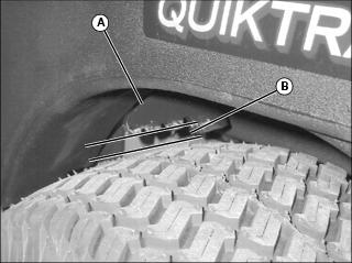 4. Adjust distance (B) between pawl and tire to 9.5-13 mm (3/8-1/2 in.).