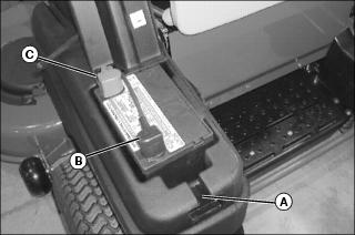 4. Slide red cover away from terminal and disconnect positive (+) battery cable (C).