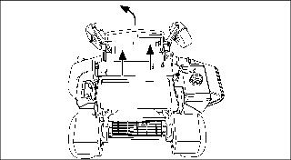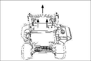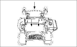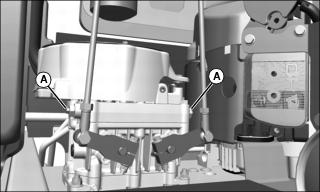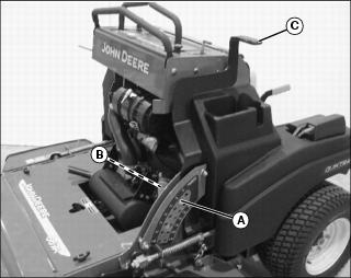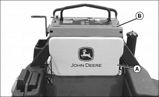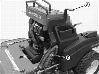 NOTE: The pump (A) is located to the right of the engine. The free-wheel valves (B) can be accessed through the front opening.
