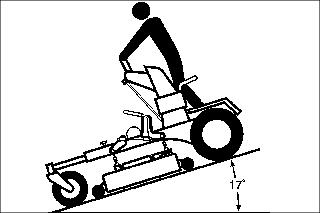 Do not stop engine when mower is on a slope of more than 30° for an extended period of time. Oil may run through valve train into carburetor and muffler.