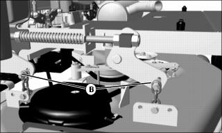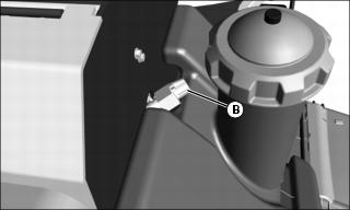 5. Turn both free-wheeling valves (B) one full turn clockwise (closed position). Tighten the valve to 6 N·m (61 lb-in.).