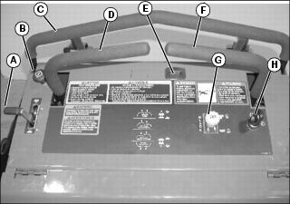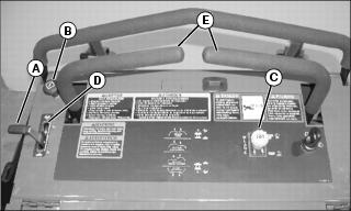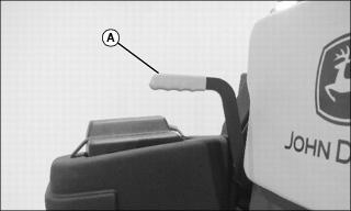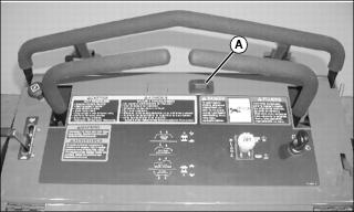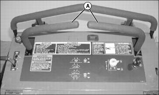 1. Step on operator's platform (A) at the rear of machine to mount the machine.