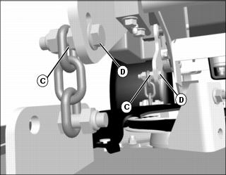 · Loosen jam nuts (C) and adjust cap screws (D) on all four adjusters until side-to-side level is reached.