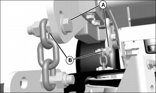 3. Remove retaining ring (A) and HOC pin (B). Place HOC pin in desired height hole.