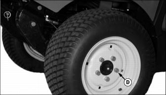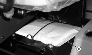 7. Locate bag of parts (C) from operator's seat adjustment lever. Remove bag from machine and take out six lug bolts and six lock washers.