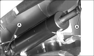 2. Lubricate hydraulic steering cylinder ends (A) at rear of machine with John Deere Multi-Purpose HD Lithium Complex Grease or John Deere Moly High Temperature EP Grease.