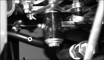 2. Locate hydrostatic linkage grease fitting (A) under service hatch in operator's platform, or to the rear of the right front tire.