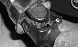3. Pump grease into grease fittings (B and C) until it can be seen seeping from all four bearing caps on the inside of each universal joint.