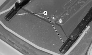 1. Lubricate operator seat slides (A) using a dry, Teflon lubricant, such as John Deere Super Lube.