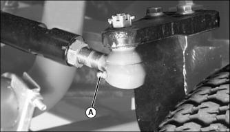 2. Lubricate left and right side of the rear tie rod (A) with John Deere Multi-Purpose HD Lithium Complex Grease or John Deere Moly High Temperature EP Grease.
