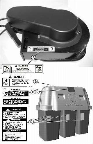 The machine safety labels shown in this section are placed in important areas on your machine to draw attention to potential safety hazards.