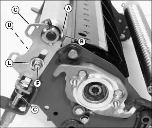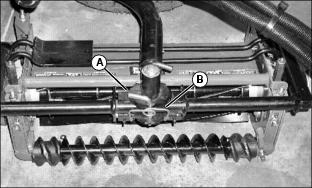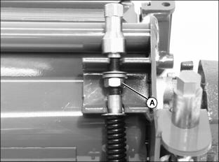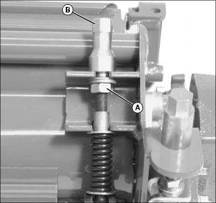· Restore bed knife spring tension by turning jam nuts (A) clockwise. Turn jam nuts only midway up the threaded adjustment.