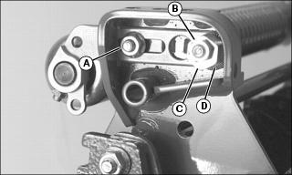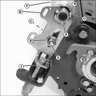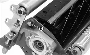 5. Install both shoulder bolts (D). Tighten hardware to 55 N·m (40 lb-ft).