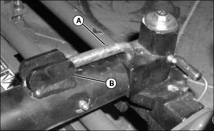 If the yolk contacts the stabilizer bracket loosen the hardware (A) and move the rubber pad (B) down so there is no metal to metal contact. Tighten hardware.