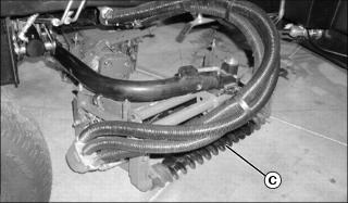 5. Rotate each adjustment assembly away from reel housing bracket (C).