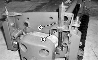 7. Raise reel, by turning the reel adjusting nut (C) clockwise and nut (D) counterclockwise, until the knife and support can be installed.