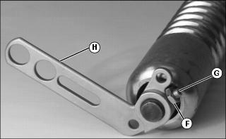 8. The unique spring design has two settings: The bottom hole (H) locks the cutting units in the normal operating position. The top hole (I) locks the cutting unit in forward position to present the blades.