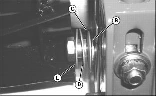 3. Install second spring washer (D) with cupped side out and install last spring washer (E) with cupped side in. The cupped sides of D and E should face each other.