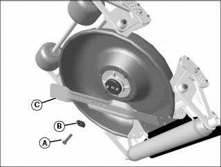 6. Remove bolt (A), washer (B) and blade (C) by turning the bolt counterclockwise.
