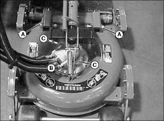 5. If needed, remove two bolts (C) and remove hydraulic motor from cutting unit.