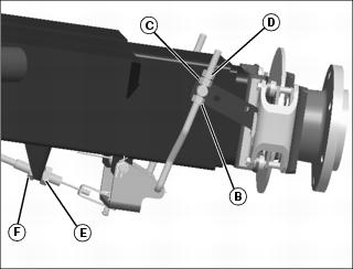 10. Loosen jam nut (E) and adjust coupler nut (F).
