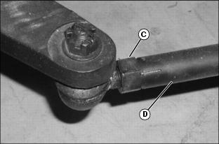 7. Turn tie rod (D) until toe-in distance is 2 to 9 mm (3/32 to 3/8 in.).