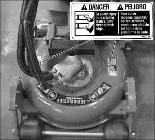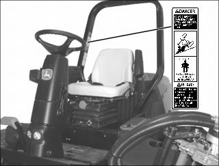 Safety LabelsUnderstanding The Machine Safety LabelsThe machine safety labels shown in this section are placed in important areas on your machine to draw attention to potential safety hazards. On your machine safety labels, the words DANGER, WARNING, and CAUTION are used with this safety-alert symbol. DANGER identifies the most serious hazards. The operator's manual also explains any potential safety hazards whenever necessary in special safety messages that are identified with the word, CAUTION, and the safety-alert symbol. CAUTION· Do not operate the machine without guards, shields, and safety devices in place and working. · Do not operate the machine when children and/or others are around. · Do not operate the machine unless you are trained. · Keep people a safe distance away. · Stay clear of power driven parts. · Do not operate where machine could tip. · Roll-Over Protection Structure (ROPS) should be installed unless prohibited by low clearance operation. · Use seat belts unless machine is operated without ROPS. WARNINGPicture Note: Two warning labels are on each cutting unit. To avoid injury from rotating blades, stay clear of reel. Shut off engine before servicing lubrication or removing cutting unit. DANGERTo avoid injury from rotating blades, stay clear of deck edge. WARNINGTo avoid injury from crushing, always wear seat belt. Do not jump from machine. DANGEREXPLOSIVE GASESCigarettes, flames or sparks could cause the battery to explode. Always shield eyes and face from battery. Do not charge or use cables or adjust poor connections without proper instructions and training. Keep vent caps tight and level. POISON CAUSES SEVERE BURNSContains sulfuric acid. Avoid contact with skin, eyes or clothing. In event of an accident, flush with water and call a physician immediately. Keep out of reach of children. CertificationYour product has been tested and evaluated by the manufacturer and conforms with American National Standard B-71.4, "Safety Specifications" for commercial turf care equipment. Emission Control System Certification LabelThe emissions warranty described in the warranty section applies only to those engines marketed by John Deere that have been certified by the United States Environmental Protection Agency (EPA) and/or California Air Resources Board (CARB); and used in the United States in non-road mobile (self-propelled or portable/transportable1) equipment. The presence of an emissions label like the one shown signifies that the engine has been certified with the EPA and/or CARB. The EPA and CARB warranties only apply to new engines having the certification label affixed to the engine and sold as stated above in the geographic areas governed by the regulating agencies. NOTE: The hp/kW rating on the engine emissions certification label specifies the gross engine hp/kW, which is flywheel power without fan. In most applications this will not be the same rating as the advertised vehicle hp/kW rating. |