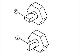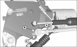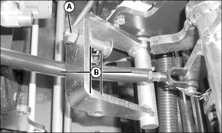 2. Turn pin to vertical position (B) to disconnect transmission.