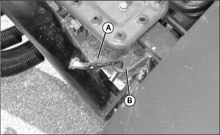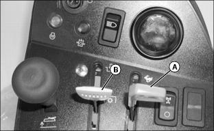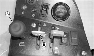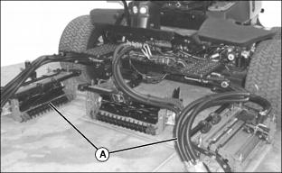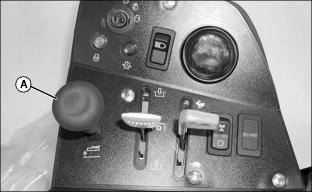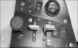 1. Pull the raise-lower lever (A) rearward to raise cutting units.