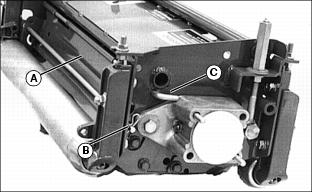 2. Loosen hex nut (A) and hex nut (B) on the left roller bracket.