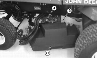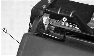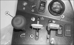 4. Move the throttle lever (C) fully forward to the fast idle position.