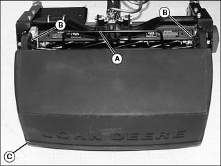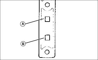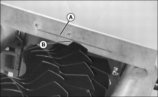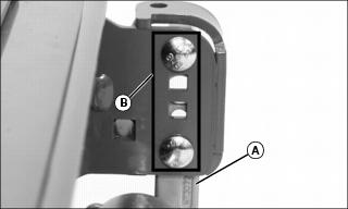 · Alignment of roller bracket (A) and cutting unit frame adjustment holes (B) on each side of the cutting unit will determine the HOC adjustment range.