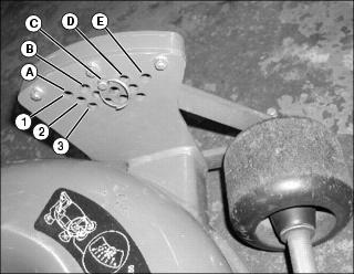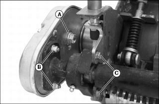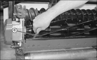 7. If vertical cutter cannot be adjusted because of wear, move rear adjuster bolts to top holes (C).