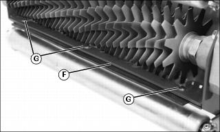 5. Slide the rear roller powered brush (F) up or down to adjust the roller.