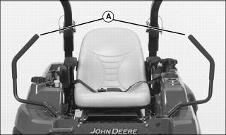 1. With the spring pins and drilled pins installed, push the upper ROPS (A) rearward so it is securely against positioning pin (B).