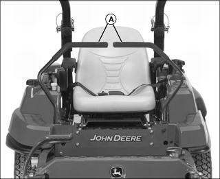 When mounting and dismounting the machine, do so from the left side of the machine using the deck pad (A) or the foot plate (B). Park machine safely (see Parking Safely in the SAFETY section) before dismounting. Do not mount or dismount the machine from the front.