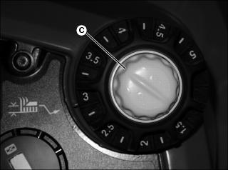 Cutting height can be adjusted from approximately 38 to 127 mm (1-1/2 to 5 in.). Each increment on the knob adjusts the height-of-cut (HOC) approximately 6 mm (1/4 in.).