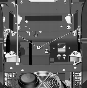 3. Locate the grease fittings (A) on the return to neutral (RTN) blocks and add grease as required.