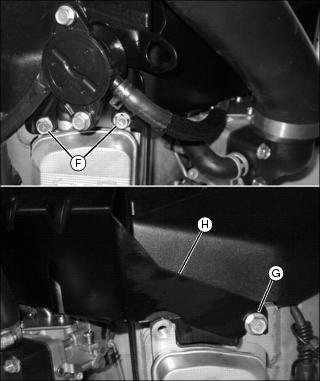 10. Remove the four hex head bolts (N) and remove oil cooler (O).