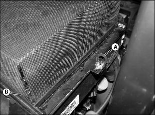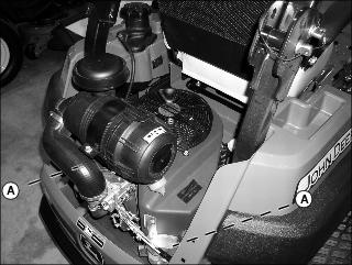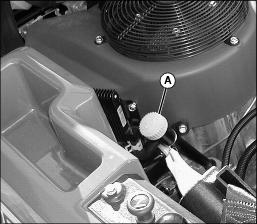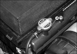 3. With machine on a level surface remove the radiator cap (A) by turning it counterclockwise.