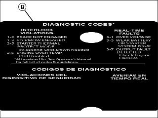 Picture Note: Diagnostic code label is located on right side console beside operator’s seat.