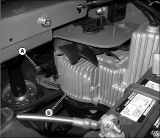 2. On both transmissions turn bypass valve (A and B) one and one half to two full turns counterclockwise to the open position.
