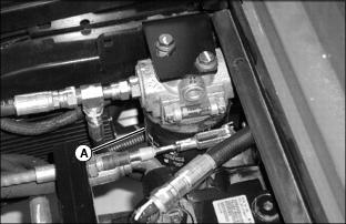 3. Locate and check hydraulic oil filter status indicator (A) just above oil filter.