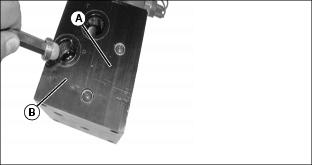 • When plunger (B) inside indicator moves in direction shown by arrow on indicator and is visible inside the indicator red zone, hydraulic oil filter requires immediate service.
