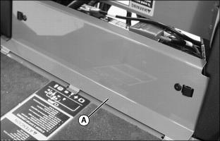 3. Remove service access panel (A) below operator seat platform.