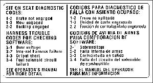 • PARK BRAKE diagnostic code: one flash, a short pause and two additional flashes. This code sequence indicates that the park brake switch has not been activated. Lock park brake to start engine.