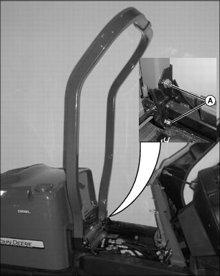 1. Check and tighten ROPS hardware (A) to 50 N•m (37 lb-ft) on both ROPS posts.